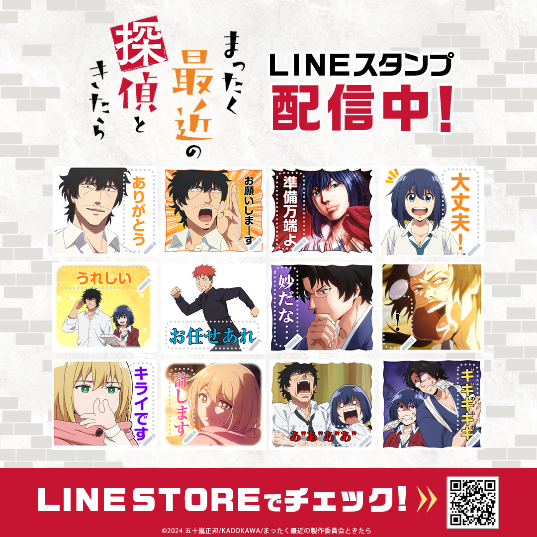 TVアニメ「まったく最近の探偵ときたら」初となるLINEスタンプがインクルーズの販売アカウントより配信開始!是非、LINEスタンプでもTVアニメ「まったく最近の探偵ときたら」の世界観をお楽しみください。