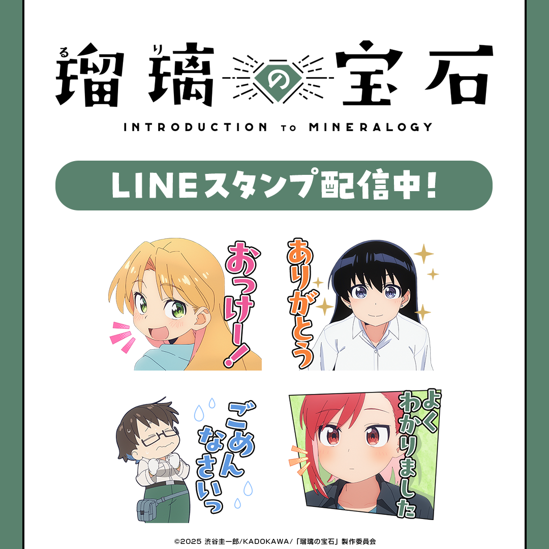 株式会社インクルーズ(東京都渋谷区、代表取締役社長 山﨑 健司)は、LINEヤフー株式会社が運営するコミュニケーションアプリ「LINE」内のスタンプショップにて、TVアニメ「瑠璃の宝石」のLINEスタンプを2025年10月9日(木)に配信開始致しました。