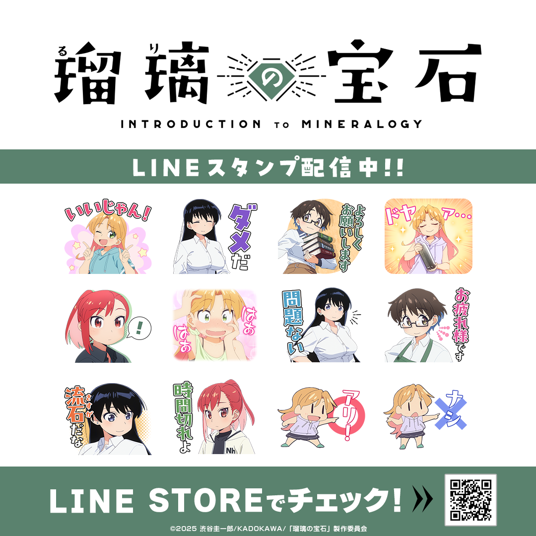 TVアニメ「瑠璃の宝石」初となるLINEスタンプがインクルーズの販売アカウントより配信開始!是非、LINEスタンプでもTVアニメ「瑠璃の宝石」の世界観をお楽しみください。