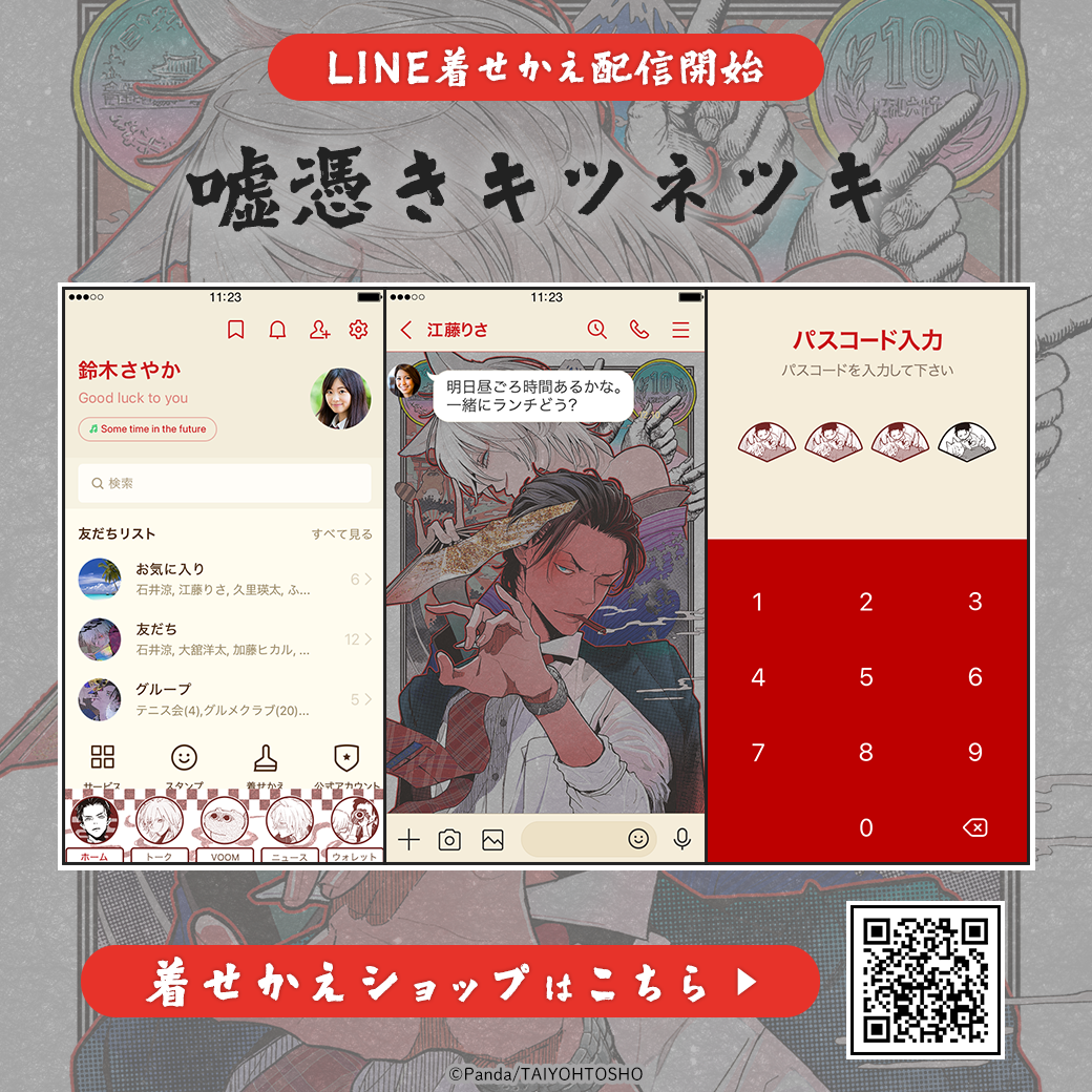「嘘憑きキツネツキ」初となるLINE着せかえが【株式会社インクルーズの販売アカウント】より配信開始!是非、LINE着せかえでも「嘘憑きキツネツキ」の世界観をお楽しみください。
