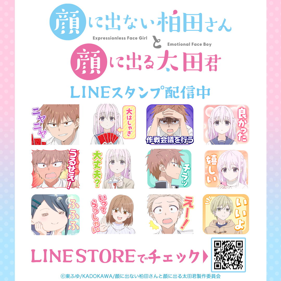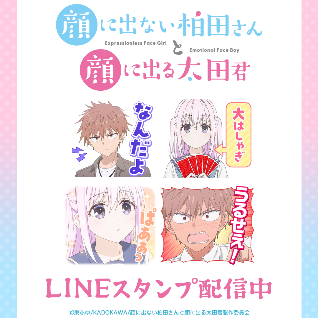 TVアニメ『顔に出ない柏田さんと顔に出る太田君』初となるLINEスタンプがインクルーズの販売アカウントより配信開始!是非、LINEスタンプでもTVアニメ『顔に出ない柏田さんと顔に出る太田君』の世界観をお楽しみください。