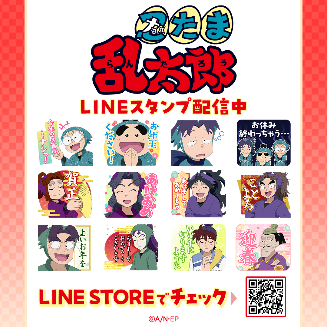 TVアニメ「忍たま乱太郎」のLINEスタンプ最新作がインクルーズの販売アカウントより配信開始!年末年始に使いやすい「あけましておめでとう」や「良いお年を」などのスタンプが盛り沢山!是非、年末年始でもTVアニメ「忍たま乱太郎」の世界観をお楽しみください。