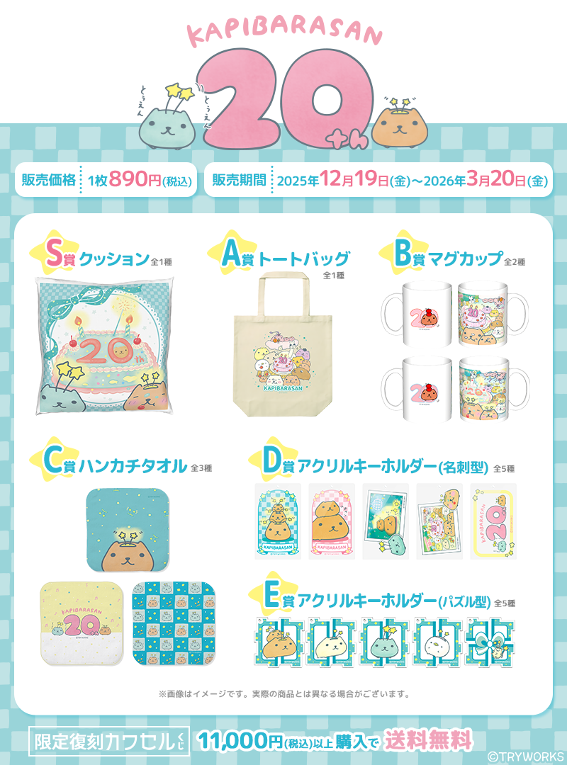 オンラインから気軽に購入できるこのくじで、「カピバラさん」20周年をもう一度、お祝いしましょう!