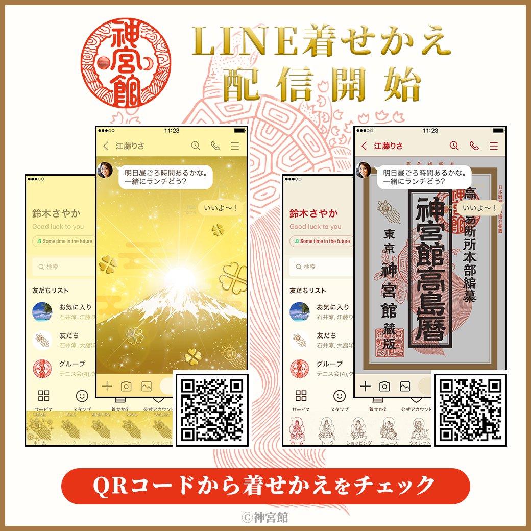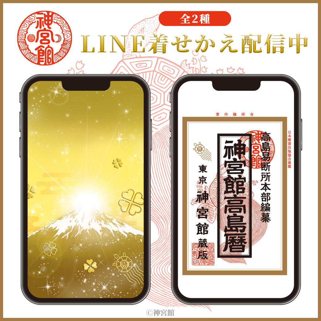 「神宮館」初となるLINE着せかえ2点がインクルーズの販売アカウントより一斉に配信開始!LINEを「神宮館」のデザインに着せかえたら運気UP間違いなし!?