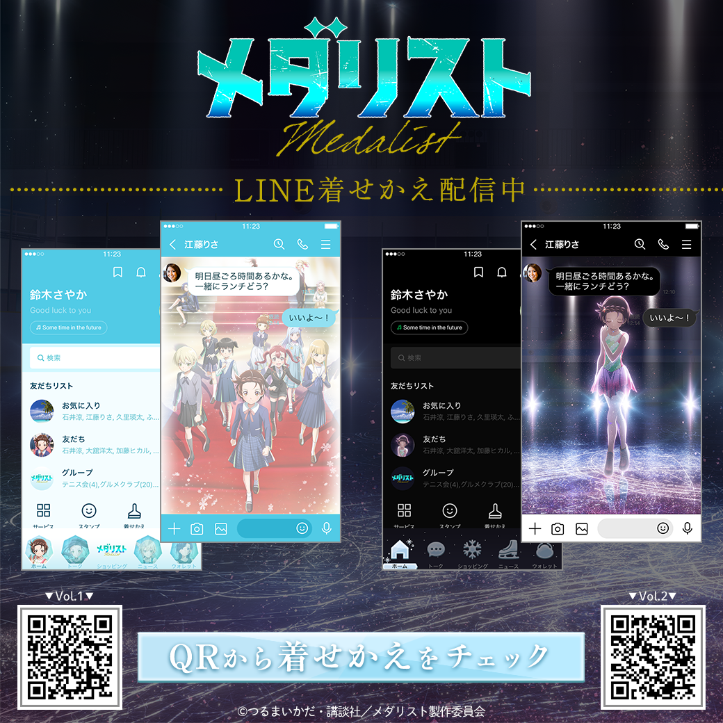 TVアニメ「メダリスト」第2期のキービジュアルとティザービジュアルが、それぞれLINE着せかえになって、インクルーズの販売アカウントより一斉に2点が配信開始!先行配信中のLINEスタンプと一緒に「メダリスト」第2期の世界観をお楽しみください!
