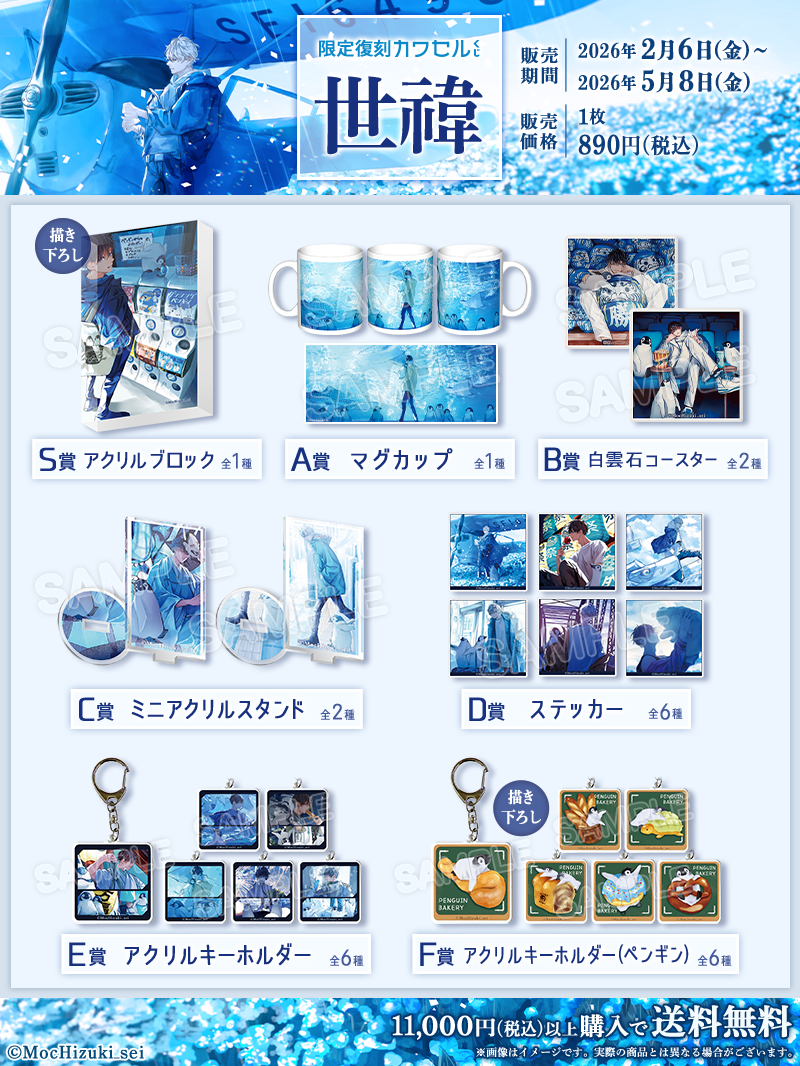フィジカルグッズのオンラインくじ「カワセルくじ」にて、大好評を博しながらも期間限定での販売を終了した人気イラストレーター「世禕」のくじが、ファンの声を受けて、2回目の【復刻再販】を開始しました。