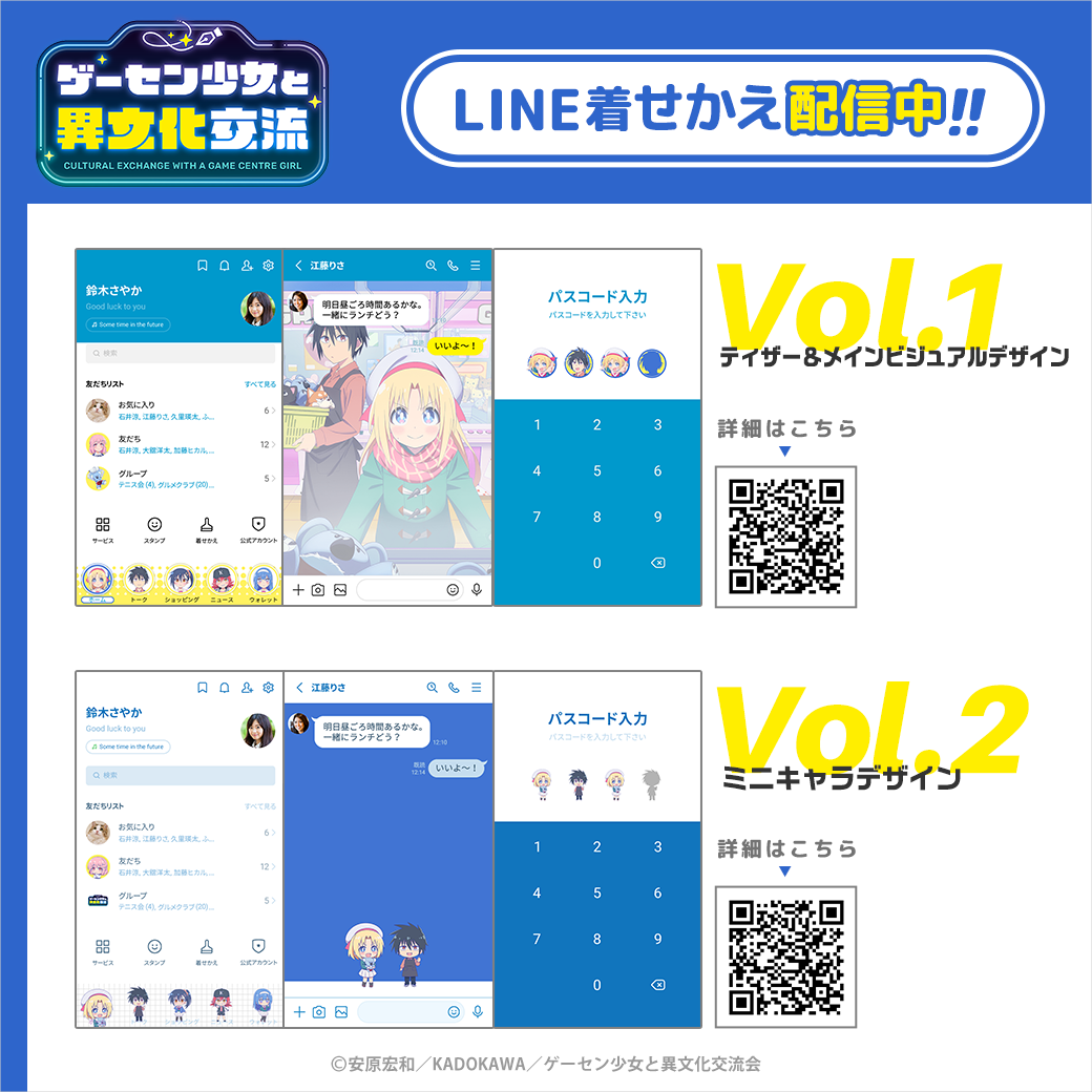TVアニメ『ゲーセン少女と異文化交流』初となるLINE着せかえの第1弾と第2弾が、株式会社インクルーズの販売アカウントより配信開始いたしました。是非、LINE着せかえでもTVアニメ『ゲーセン少女と異文化交流』の世界観をお楽しみください。