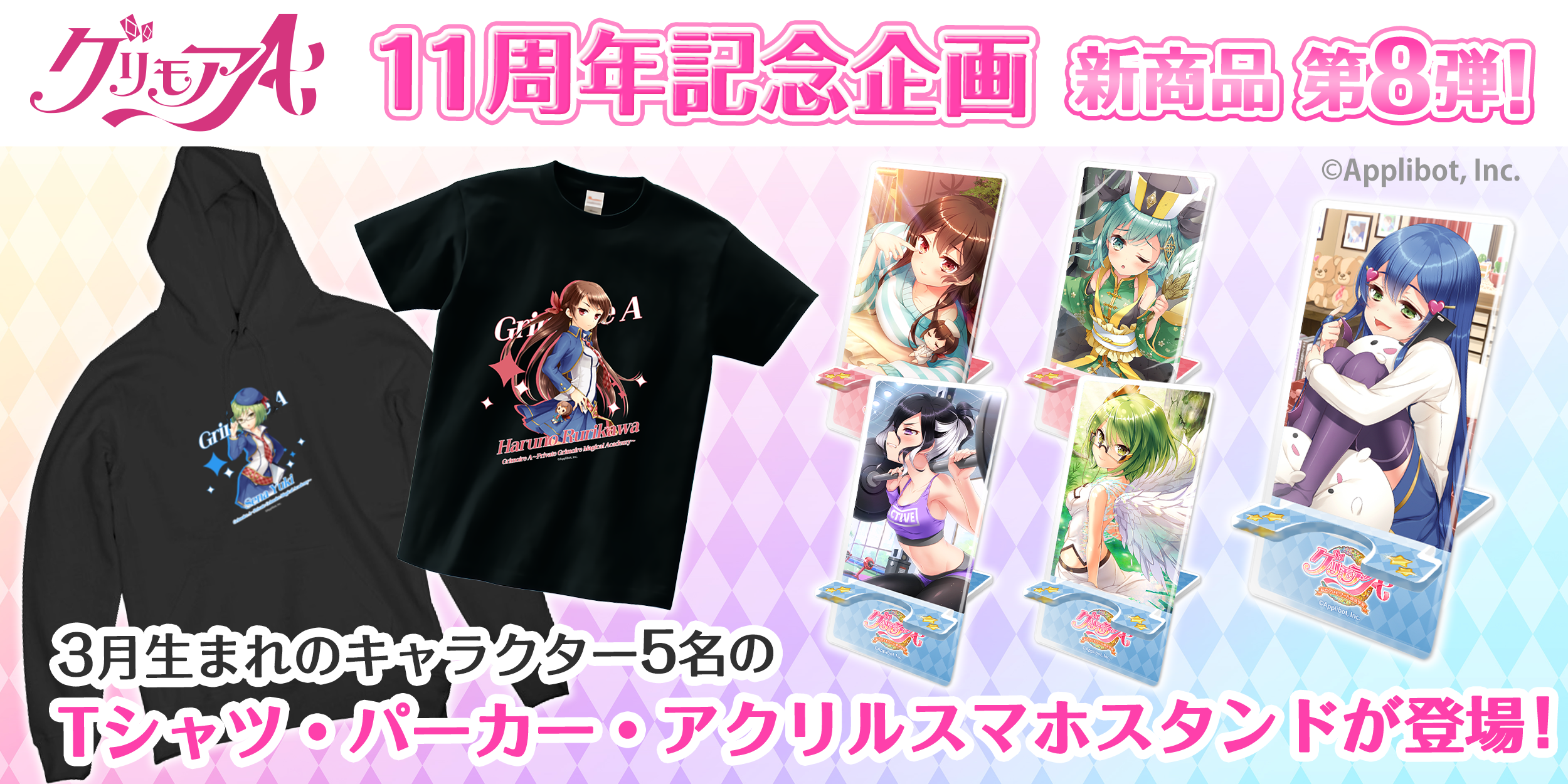 「グリモアA~私立グリモワール魔法学園~」の11周年を記念し、キャラクターの誕生日の月に合わせて、毎月豪華な新商品が販売されます!