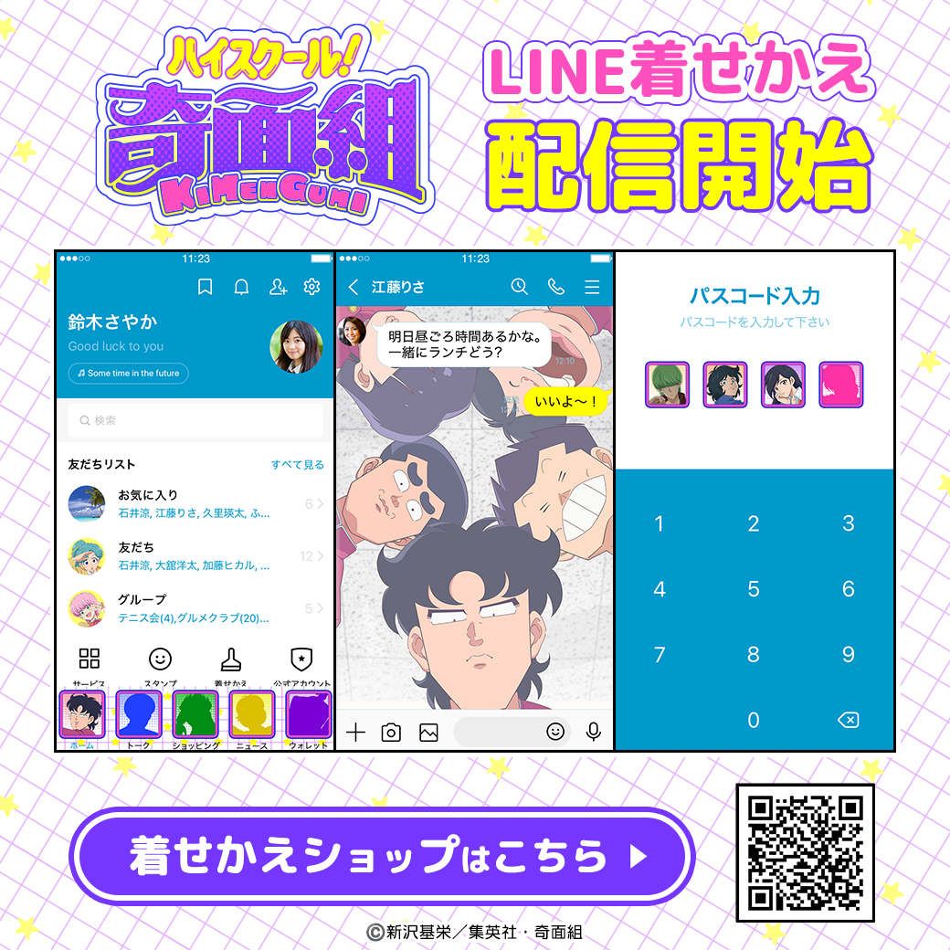 TVアニメ『ハイスクール!奇面組』初となるLINE着せかえの第1弾が、株式会社インクルーズの販売アカウントより配信開始いたしました。是非、LINE着せかえでもTVアニメ『ハイスクール!奇面組』の世界観をお楽しみください。