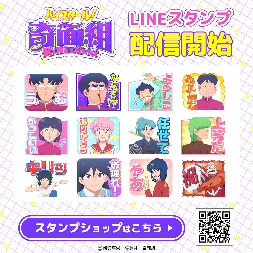株式会社インクルーズ(東京都渋谷区、代表取締役社長 山﨑 健司)は、LINEヤフー株式会社が運営するコミュニケーションアプリ「LINE」内のスタンプショップにて、TVアニメ『ハイスクール!奇面組』のLINEスタンプを2026年3月31日(火)に配信開始致しました。